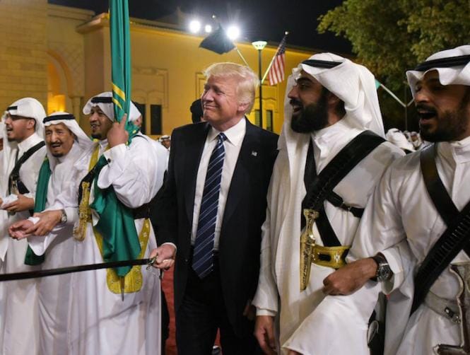 Trump landed in Saudi Arabia earlier in the day as he begins his first overseas trip as president. He signed a $110 billion arms deal with Saudi King Salman.