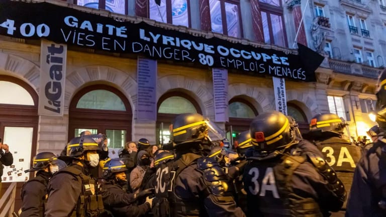 واندلعت أعمال عنف خارج مسرح "جايتي ليريك"، أحد أقدم قاعات الفنون في العاصمة الفرنسية.