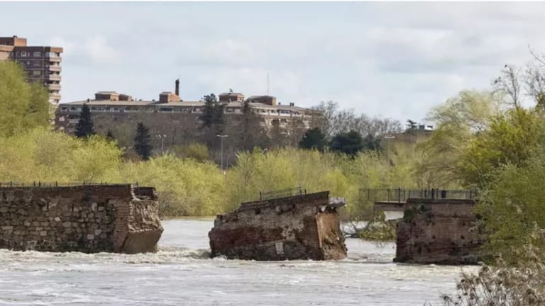 تسبّب فيضان نهر تاجة في إسبانيا بتدمير جزء من جسر يعود للعصر الروماني في مدينة تالافيرا دي لا رينا في وسط البلاد الذي يتعرض منذ أسابيع لأمطار غزيرة.