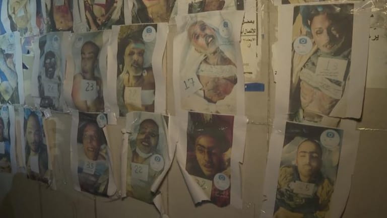 تتابعون في الفيديو المرفق صورا علقت على جدار مستشفى "المجتهد" لجثث تظهر عليها آثار التعذيب، والحرق بالأسيد، ونعتذر عن قساوة المشاهد.