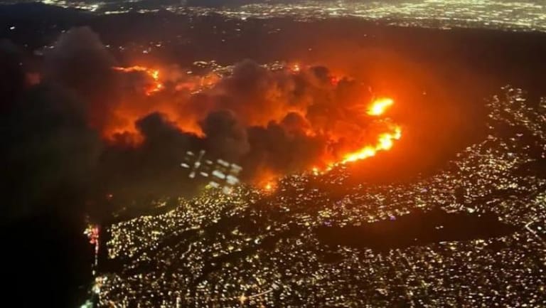 مشاهد مروّعة من مناطق في لوس أنجليس بعدما التهمتها النيران، في الفيديو المرفق.