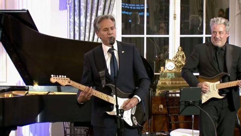 تداول ناشطون على مواقع التواصل الاجتماعي مقطع فيديو لوزير الخارجية الأميركيّة أنتوني بلينكن، يُغنّي ويعزف، الأمر الذي أثار تفاعلاً كبيراً على منصة "اكس".