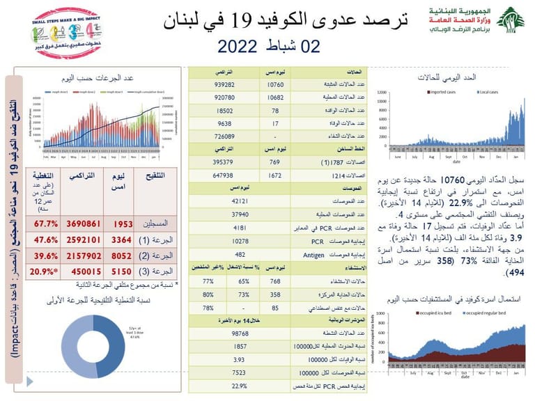 حصيلة قياسية: 10760 إصابة و17 حالة وفاة بفيروس "كورونا" في لبنان