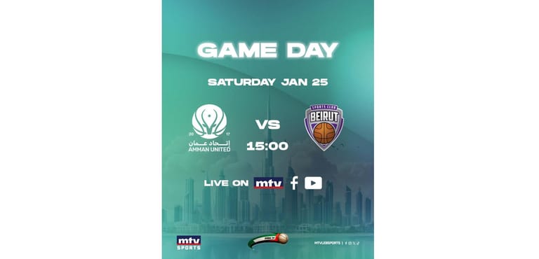 ترقّبوا مباراة عمان يونايتد الأردني بمواجهة بيروت ضمن الدور الأول من بطولة دبي الدولية لكرة السلة الساعة 3:00 مباشرةً عبر mtv