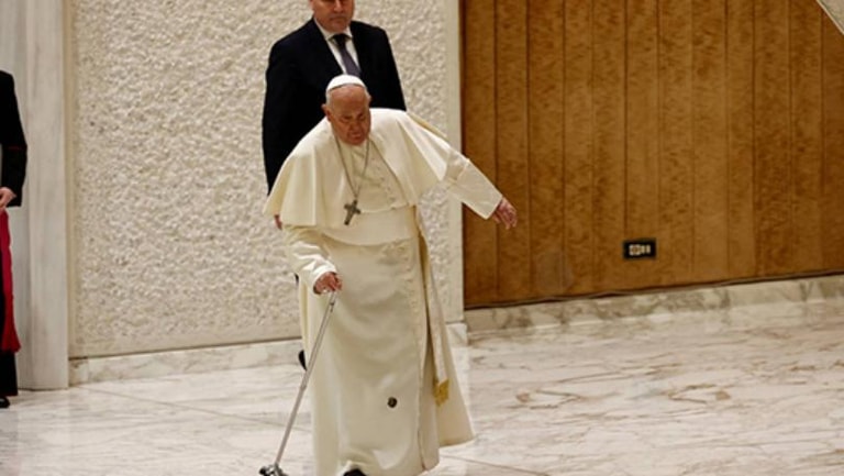 انتشرت صورة للبابا فرنسيس الذي تعثّر بعد أن انكسر عصاه أثناء وصوله لعقد لقاء بالفاتيكان. لكنّ البابا استعاد توازنه بسرعة وواصل السير.