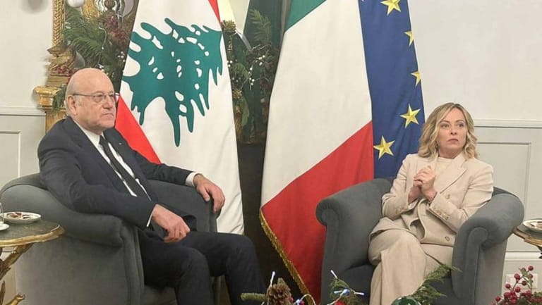 ثم عُقد اجتماع بين رئيسي حكومتي البلدين، شارك فيه عن الجانب الايطالي المستشار العسكري لميلوني الجنرال فرانكو فديريتشي والمستشار الديبلوماسي السفير فابريسيو سادجيو. كما شارك عن الجانب اللبناني سفيرة لبنان في ايطاليا ميرا ضاهر، والمستشار زياد ميقاتي.