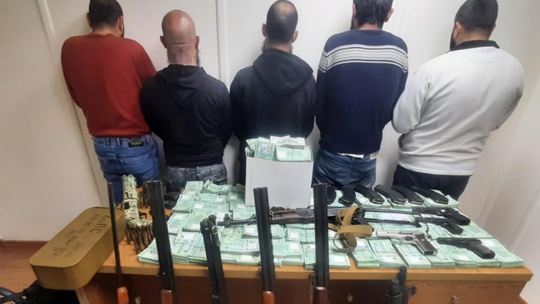 بتفتيشهم وتفتيش منازلهم، تمّ ضبط بندقية كلاشينكوف، وأربعة مسدّسات حربية، وبومب أكشن عدد 2، وأربع بنادق صيد، ومبلغ /1,686,530,000/ ل.ل. و/5964/ دولارًا أميركيًّا.