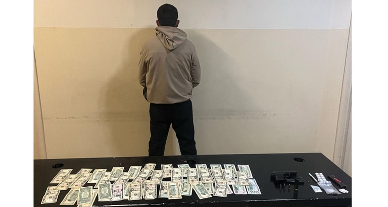 كما ضبط بحوزته سلاح حربي ومواد مخدرة ومبالغ مالية.