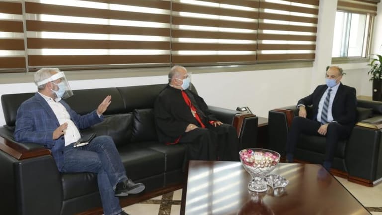 استقبل وزير الصحة العامة في حكومة تصريف الاعمال حمد حسن النائب أنطوان حبشي يرافقه راعي أبرشية بعلبك - دير الأحمر المارونية المطران حنا رحمة.