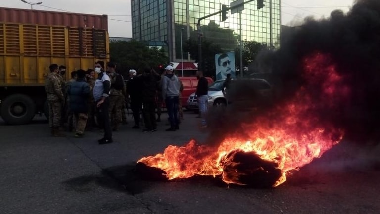 عمد محتجون الى اضرام النار بالاطارات عند تقاطع ايليا في مدينة صيدا، احتجاجاً على تردي الاوضاع الاقتصادية والمعيشية والحديث عن تمديد الاقفال والفتح التدريجي. وقد اقفلوا جانبا من الطريق والجيش تدخل لمنع اقفالها.