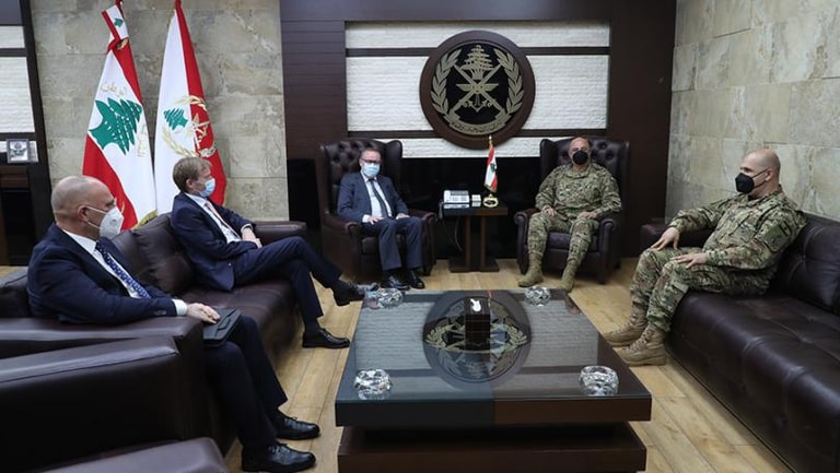 استقبل قائد الجيش العماد جوزاف عون في مكتبه في اليرزة، سفير المملكة المغربية في لبنان محمد أكرين يرافقه العقيد البحري خالد المهلل، وأعرب العماد عون عن شكره العميق لـ"جلالة الملك محمد السادس على الهبة الملكية القيمة التي قدمها إلى المؤسسة العسكرية والشعب اللبناني، خلال هذه المرحلة الدقيقة"، معتبراً أن "هذه التقدمة تعكس عمق العلاقة المتينة بين البلدين".