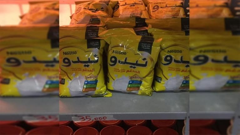 اللبنانيون يركضون من سوبرماكت إلى أخرى، يستجدون لأطفالهم الحليب حتى وإن لم يكن مدعوماً، وإذا ببعض الأشخاص يتراسلون بصور لأكياس حليب لإحدى الماركات المعروفة في محلات الـ1$ في عدد من المناطق.