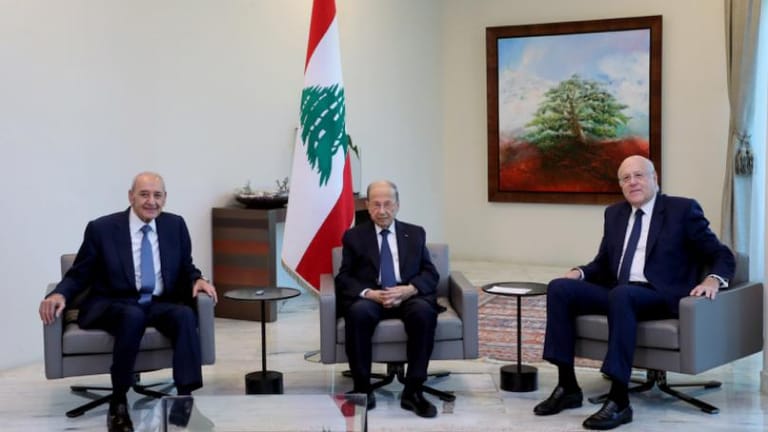 فرسالة ماكرون إلى عون هي الأولى، كما يقول مرجع سياسي لـ«الشرق الأوسط»، منذ أن تشكّلت الحكومة الجديدة، برئاسة نجيب ميقاتي، الذي كان تحدّث عن ضمانات دولية لإخراج لبنان من أزماته، سرعان ما اصطدمت بالخلافات السياسية بين «أهل البيت» الذين تتشكّل منهم الحكومة، وأدت إلى تحويلها لحكومة تصريف أعمال على خلفية الانفجار السياسي الذي يحاصرها، بعد مضي شهر على ولادتها بسبب الخلاف حول التحقيق في انفجار مرفأ بيروت.