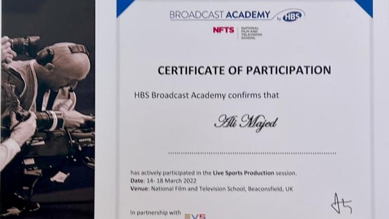 انضم المخرج اللبناني علي ماجد الى قائمة المحترفين في الاخراج العالمي للمباريات بعد مشاركته وحصوله على شهادة "مخرج مباريات عالمية" من الاكاديمية HBS التابعة للاتحاد الدولي لكرة القدم (FIFA)، والتي تعد واحدة من بين أشهر الشهادات المعتمدة عالميا في مجال اخراج المباريات الرياضية.