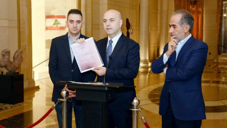 لذلك، تقدم نواب من تكتل الجمھوریة القویة بعریضة الى دولة رئیس مجلس النواب بواسطة ھیئة مكتب المجلس بحسب الأصول، عملا بالمواد ٤٥ و٤٦ و٨ من النظام الداخلي لمجلس النواب طالبین:
