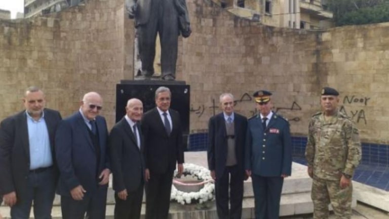 وضع وزير العدل في حكومة تصريف الاعمال هنري الخوري إكليلاً من الزهر على تمثال الرئيس بشارة الخوري، وأدت ثلة من الجيش التحية وعزفت موسيقى الجيش اللبناني، في حضور ممثل قائد الجيش العماد جوزيف عون العميد أحمد عدرا والشيخ مالك الخوري والسفير سمير الخوري والمهندس رفيق الخوري.