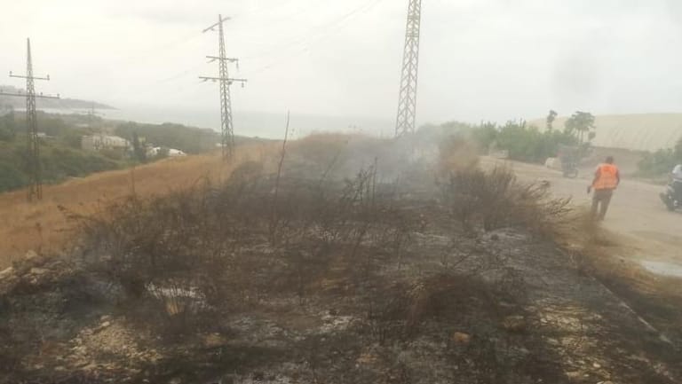 أخمد عناصر من الدفاع المدني حريقاً شبّ في أعشاب في المشرف - الشوف.