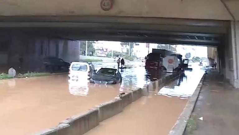 لا تزال طريق الكرنتينا مقفلة بسبب السيول التي اجتاحتها جراء الأمطار الغزيرة التي تسببت بفيضان نهر بيروت، وأدّى ذلك إلى غرق عدد من السيارات.