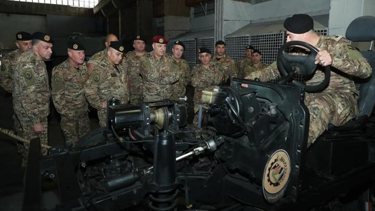 تفقَّد قائد الجيش العماد جوزاف عون اللواء اللوجستي في ثكنة يوسف الأسطا – كفرشيما حيث التقى الضباط والعسكريين واطّلع على سير العمل في مديريات اللواء وأقسامه ولا سيما المعامل والمصالح المستحدثة، واستمع إلى إيجاز حول مهماته وخطط تحديثه.