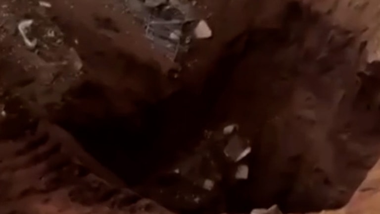 لقطاتٌ للحفرة في الضاحية الجنوبية في بيروت التي استُشهد فيها أمين عام "حزب الله" السيد حسن نصرالله جراء القصف الاسرائيلي غير المسبوق على هذه النقطة.