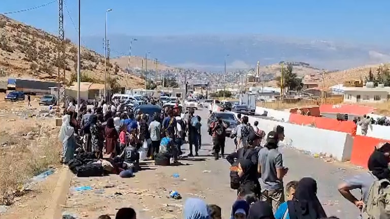 زحمة كبيرة عند معبر المصنع في منطقة البقاع عند الحدود اللبنانية - السورية للبنانيّين وسوريّين مغادرين.