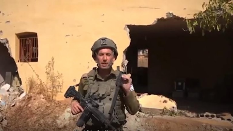 نشر المتحدث باسم الجيش الإسرائيلي أفيخاي أدرعي فيديو على منصة "اكس" يدعي فيه أن جنودا من الجيش الإسرائيلي عثروا على أسلحة تابعة لحزب الله في كل منزل من المنازل الموجودة في بلدة شيعية متاخمة للحدود.