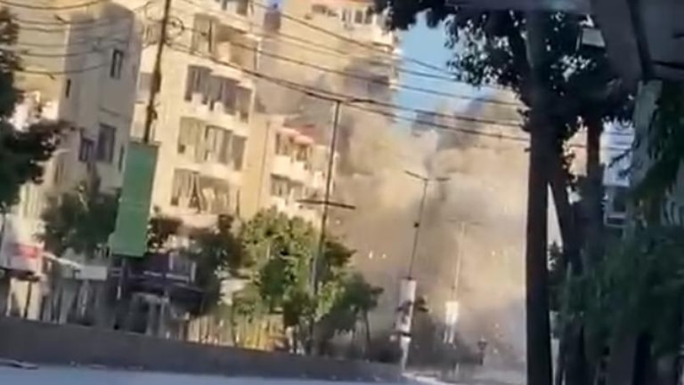 تتابعون في الفيديو المرفق لحظة قصف مبنى على أوتوستراد السيد هادي قرب شارع آل المقداد في الضاحية الجنوبيّة صباحا.