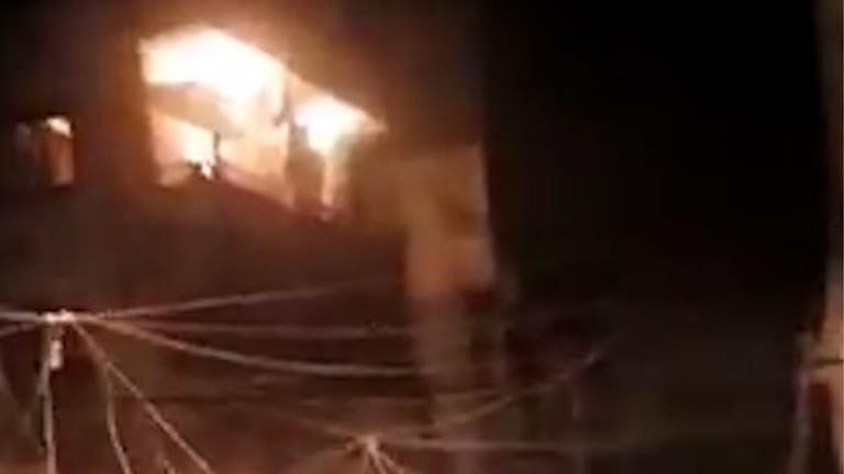 مشهد الدمار والنار بعد الغارة الإسرائيلية على أحد المباني في منطقة الشياح في الضاحية الجنوبية، في الفيديو المرفق.