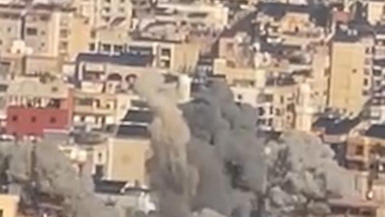 تُشاهدون في اللقطات المرفقة لحظة سقوط مبنى في الضاحية الجنوبيّة لبيروت بعد دقائق من توجيه إنذار إسرائيلي لسكّان المنطقة بضرورة الإخلاء.