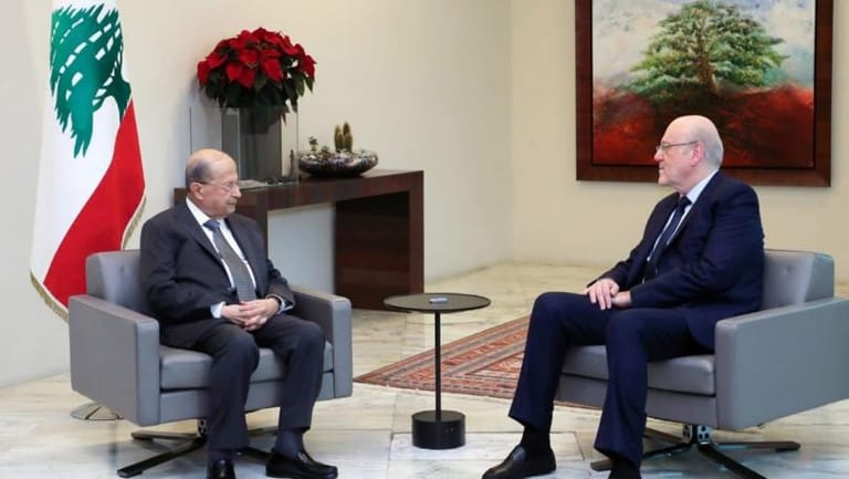 ومع اقتراب موعد انتهاء ولاية عون، تشتد الحملة على رئيس حكومة تصريف الأعمال نجيب ميقاتي، الذي سيغادر غداً إلى الجزائر لتمثيل لبنان في قمة الجزائر العربية، وتصفه الدوائر النافذة في التيار الوطني الحر "بمغتصب سلطة".