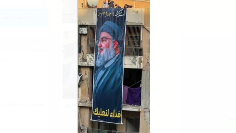 عُلّقت صورة للأمين العام لحزب الله السيد حسن نصرالله على المبنى الذي استهدفته إسرائيل في الضاحية الجنوبية لبيروت، والذي أدّى إلى اغتيال نائب رئيس المكتب السياسي لحركة "حماس" الشيخ صالح العاروري، مكتوب عليها: "فداء لنعليك"، قبل نزعها وتعليق أخرى مكانها لا تتضمّن هذه العبارة.