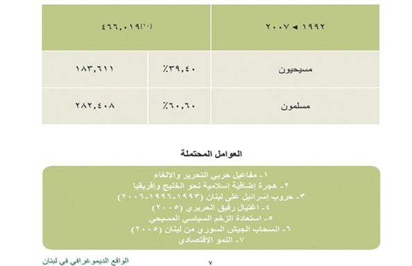 أرقامٌ مفاجئة ولكنها واقعية، تلك التي توصلت إليها دراسة تحت عنوان "الواقع الديموغرافي في لبنان". الأرقامُ أظهرت في خلاصتها أنَّ نسبة المسيحيين من المجموع العام للبنانيين استقرت بعد تراجع في الأعوام الماضية، وستبدأ بالتصاعد في السنوات المقبلة نظراً إلى تراجع موجة الهجرة والتساوي في أعداد المهاجرين المسيحيين والمسلمين، وانخفاض نسبة الإنجاب لدى المسلمين. الدراسة الإحصائية التي أجراها "المركز اللبناني للمعلومات"، وراجعتها statistics Lebanon ،  تبيّن الأسباب في جداول وملاحظات، نشرتها صحيفة "النهار" .