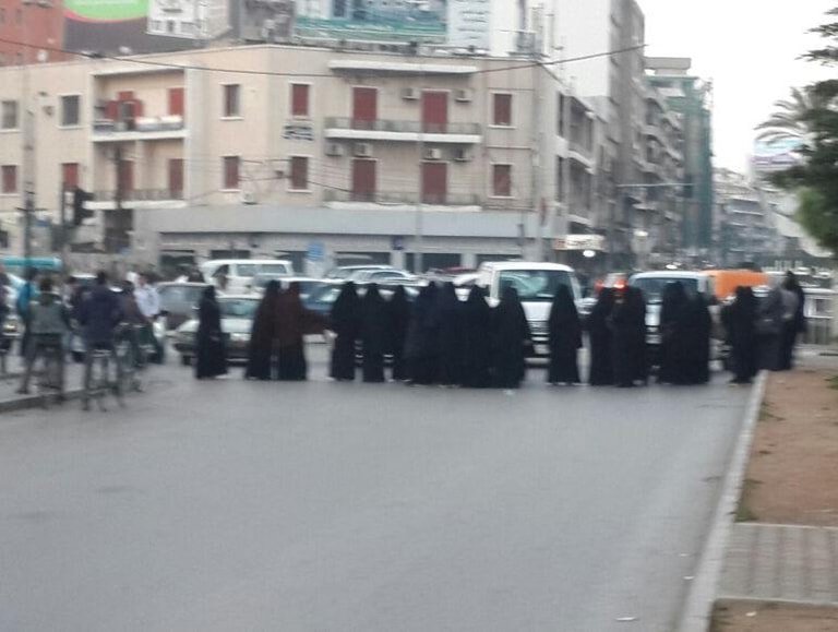 زوجات المساجين وامهاتهم يقطعن طريق طرابلس