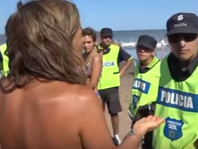 حضر زهاء 20 شرطياً إلى شاطئ في الأرجنتين ليطلبوا من ثلاث نساء ارتداء القطع العلوية من ملابس السباحة لأنهن كن يتشمسن عاريات الصدر.
