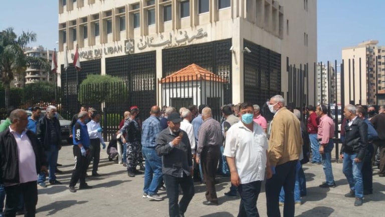 نفذ العسكريون المتقاعدون وقفة رمزية أمام مبنى مصرف لبنان - فرع طرابلس، لمطالبة المصارف بتنفيذ قرار حاكم مصرف لبنان بتجميد حسم القروض من الراتب (الاسكان والشخصي) بسبب الوضع الاقتصادي الراهن.