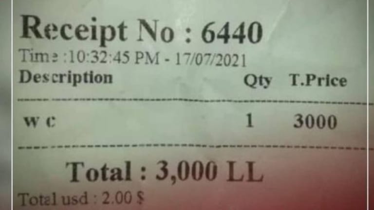 انتشرت صورة لفاتورة في أحد المطاعم في لبنان كُتب عليها أنّ كلفة دخول المرحاض 3 آلاف ليرة!