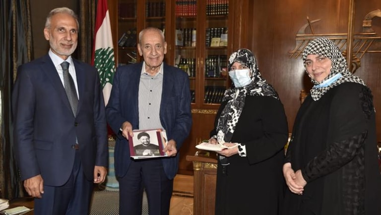 استقبل رئيس مجلس النواب نبيه بري، في مقر الرئاسة الثانية في عين التينة، وفداً من عائلة الامام السيد موسى الصدر ضم كريمتيه حوراء ومليحة الصدر بحضور السيد رائد شرف الدين، السيدة حوراء الصدر قدمت للرئيس بري كتاباً بعنوان "إجمتعنا من أجل الانسان" وهو عبارة عن محاضرة الامام الصدر التي القاها في كنيسة الكبوشيين في بيروت مترجمة الى عشر لغات عالمية.