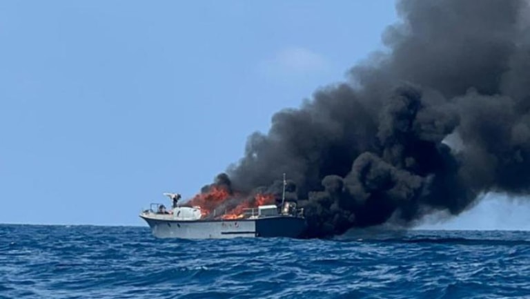 أفادت "الوكالة الوطنية للاعلام" عن اندلاع النيران في مركب، قبالة شاطئ السعديات، وعلى الاثر حضرت الى المكان، عناصر من وحدة الانقاذ البحري التابعة للدفاع المدني وعملت على انقاذ وسحب 7 اشخاص كانوا على متنه، وجميعهم بصحة جيدة.