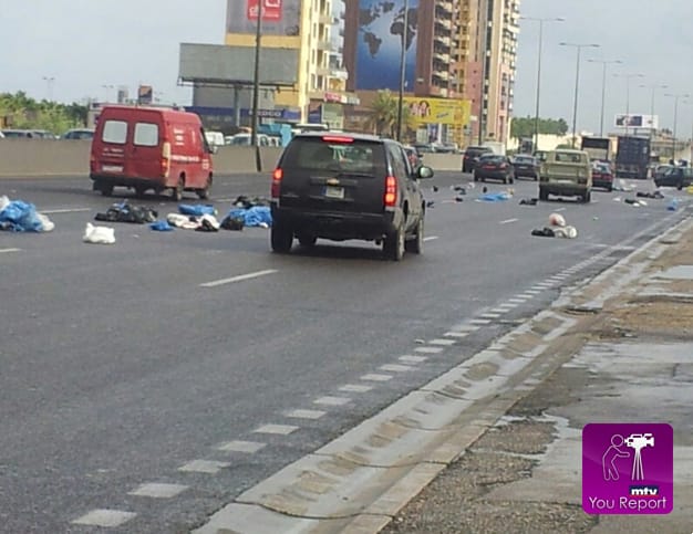 تفاجأ المواطنون بكمية كبيرة من النفايات في وسط أوتوسراد ضبية ما أعاق مرور السيارات