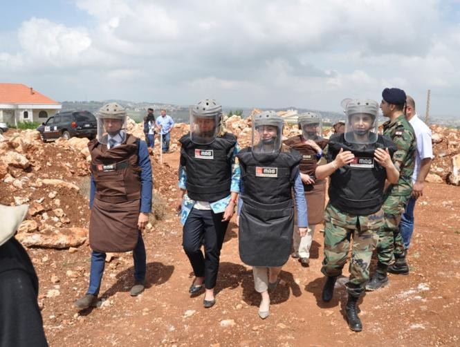 جالت المنسقة الخاصة للامم المتحدة في لبنان سيغريد كاغ وسفيرة الاتحاد الاوروبي في لبنان كريستينا لاسن على عملية نزع الالغام في منطقة النبطية، وكانت محطتهما الاولى في المركز الاقليمي التابع للمركز اللبناني للاعمال المتعلقة بالالغام في ثكنة النقيب عصام شمعون في النبطية الفوقا، حيث كان في استقبالهما رئيس المركز اللبناني للاعمال المتعلقة بالالغام العميد الركن زياد نصر، المسؤولة عن الاعلام في المركز العقيد ماري عبد المسيح، مدير مكتب مخابرات الجيش في النبطية المقدم أحمد غدار، ورئيس المركز الاقليمي الرائد وسيم لويس وعدد من ضباط المركز.