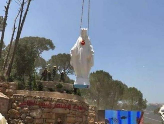 من دير مار روكز إلى دير قلب مريم، حملت الطوافة التمثال الأبيض الذي بلغ طوله 7 أمتار ونصف، لتنزله وتثبته بمساندة عناصر الجيش على صخرة قرب كنيسة سانتا فيرونيكا جولياني.