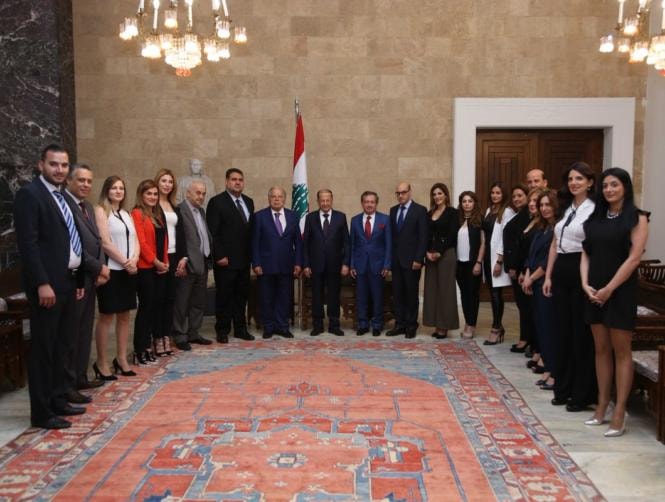 ورد عون مرحبا بالوفد عارضا للواقع الراهن في البلاد وما يقوم به لتفعيل عملية النهوض على مختلف الصعد.