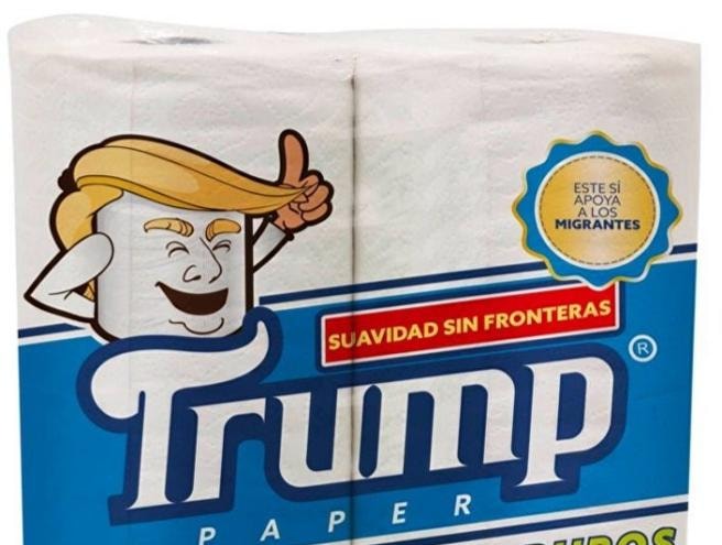 ووفق المكتوب على مغلّف المنتج "ترامب يشجّع المهاجرين"، المقصود بترامب هنا، محارم الحمام، حيث كتب بخطّ صغير "استخدام هذا المنتج يساعد أخواننا في الجالية المكسيكية في الولايات المتحدة".