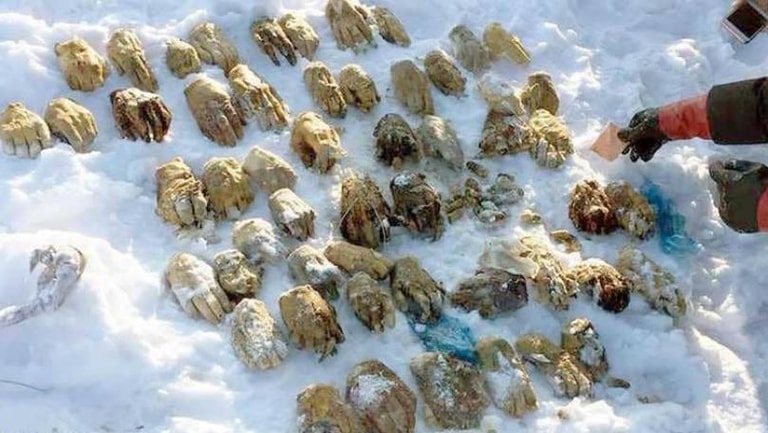 عثر سكان على 54 يدا بشرية مقطوعة، في جزيرة تغطيها الثلوج قرب مدينة خاباروفسك جنوب شرقي روسيا، بحسب ما أفادت تقارير صحافية.