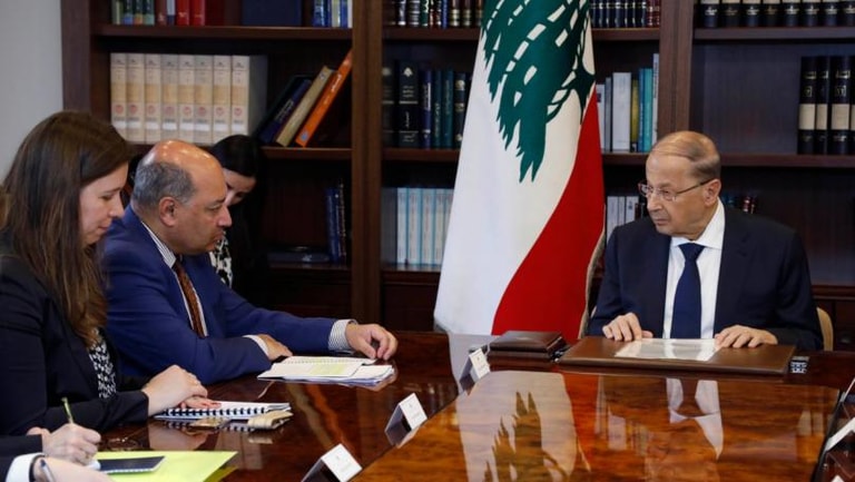 الرئيس عون يدعو رئيس البنك الاوروبي لإعادة الإعمار والتنمية سوما تشاكرابارت إلى المساهمة في مشاريع لتحسين قطاع الخدمات العامة في لبنان مثل تأهيل الطرقات والمرافق المطار