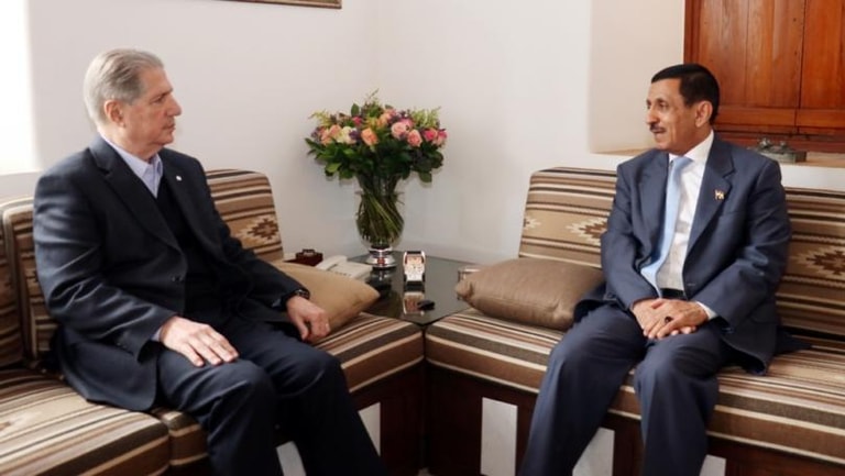 وعرض السفير الدعيس خلال اللقاء لأخر التطورات في اليمن والجهود التي تبذلها السلطات اليمنية بالتعاون مع التحالف العربي لنصرة الحق في اليمن، وأنه بالإضافة الى الجهود العسكرية هناك جهود موازية للوصول الى حل ديبلوماسي يعمل من اجل استقرار الوضع في اليمن.