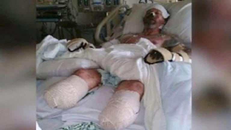 وتفيد فوكس 29 بأن المواطن غريغ مانتيفيل (48 عاما)، نقل إلى المستشفى في حزيران الماضي. واعتقد الأطباء في البداية أنه مصاب بالإنفلونزا، ولكنهم عثروا بعد ذلك في دمه على بكتيريا من نوع Capnocytophaga التي توجد في لعاب الكلاب، ويمكن أن تدخل جسم الإنسان نتيجة عضة كلب مصاب.