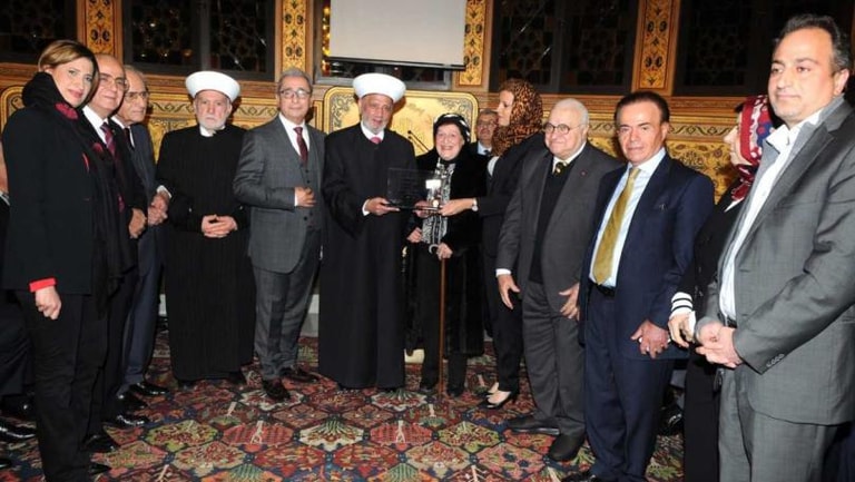 وقدم المفتي دريان والدكتور فانوس درع المركز الثقافي الإسلامي تكريما للدكتور عمر مسيكه على جهوده وعطاءاته وخدماته التي قدمها للمركز وتسلمت الدرع شقيقته الدكتورة فتنة مسيكة التي شكرت هذا التكريم.
