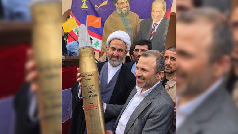 أثارت صورة وزير الخارجية جبران باسيل، خلال زيارته إحدى البلدات في جبيل، وهو يحمل "قذيفة مستعملة" أهداها له مسؤولون في "حزب الله" جدلا واسعا في لبنان.