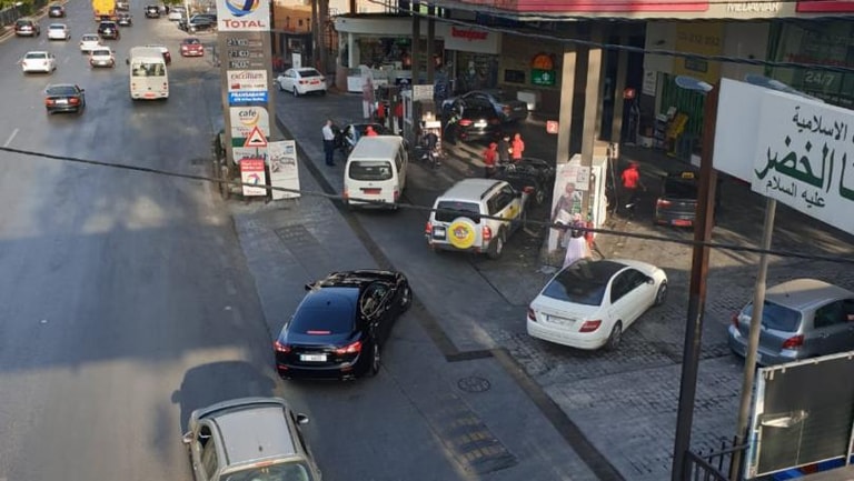 زحمة سيارات على بعض محطات الوقود خوفا من انقطاع البنزين بعد تعذر تسليم المحروقات للسوق اللبناني بسبب إضراب الجمارك